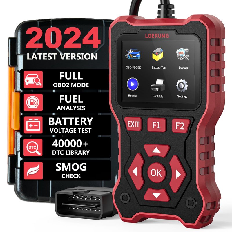 - 【Advanced Design】 Adopts TPU soft rubber shell, which plays an anti-fall role, and comes with a portable suitcase; 2.8-inch color screen display and advanced UI interface design make reading easier and clearer; plug and play, Powered by car battery cells - no batteries or chargers required, safer and more portable; with free lifetime updates, you don't have to worry about out-of-date software even if you buy a new car.