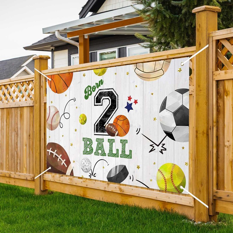 - 3:Easy to Hang:The Born 2 ball balloon sports birthday party backdrop background is very convenient to hang, and it is very convenient and time-saving to pass the gift rope through the four small holes that come with the banner, and then hang the rope where you need to hang it. it can be hung on the wall or any place you want, such as a door, porch, fence, garden, balcony, terrace or backyard.