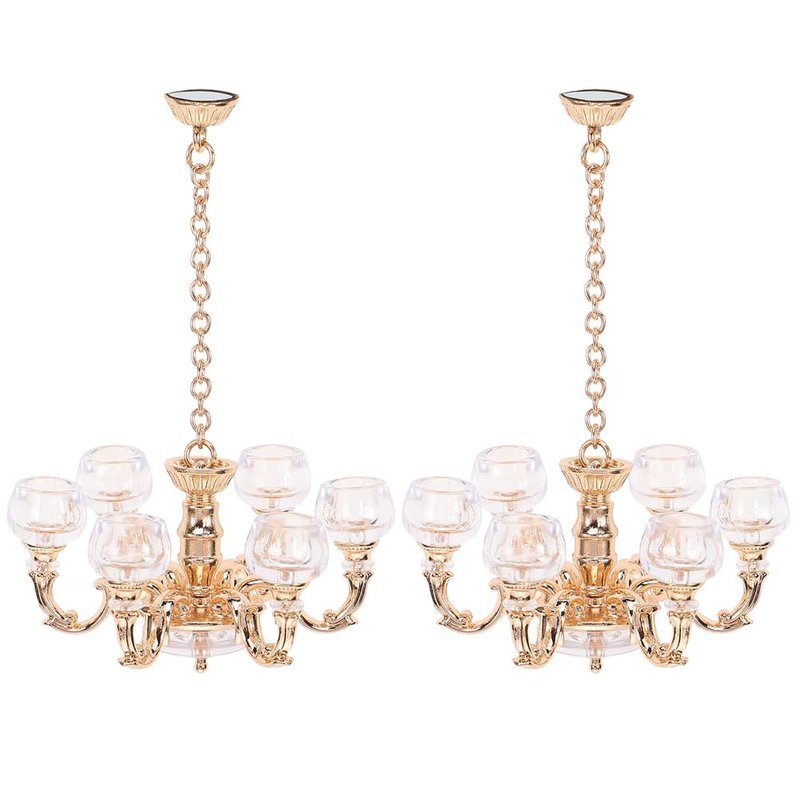 LOGOFUN 2pcs Doll House Miniature Hanging Lamp Mini Ceiling Light Model 1:12 Scale Ceiling Light Prop for Dollhouse Accessories - Gold