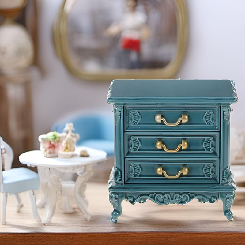 - CHARMING MINIATURIZATION : A miniature marvel that brings vintage elegance to your dollhouse decor. This blue bedside cabinet model is designed to enhance the aesthetics of mini house environments. A thoughtful gift that resonates with elegance