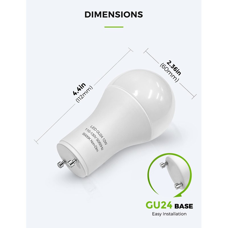 - GU24 Easy to Install- Plug & Twits GU24 base, high-end aluminum housing for excellent heat dissipation. Install into existing GU24 base fixtures simply and directly, just push in& twist. No tools required.