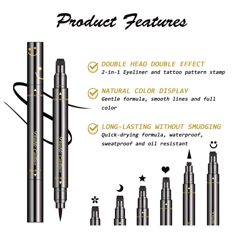 1. Double-head double effect, 2 in 1 eyeliner pencil and tattoo eyeliner stamp, one can perfect makeup.