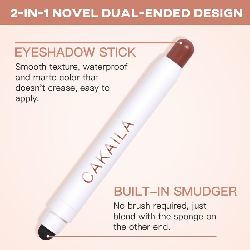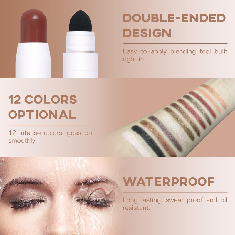 - 【2-in-1 Cream Eyeshadow Stick】Unique double-headed design with the shadow on one end and the sponge smudger on the other. Both ends have caps. Lightweight and convenient, easy to carry out. The soft creamy texture that is delicate and skin friendly, goes on smoothly like silk without clumping, jumping or smudging. Waterproof and sweatproof for long-lasting wear.