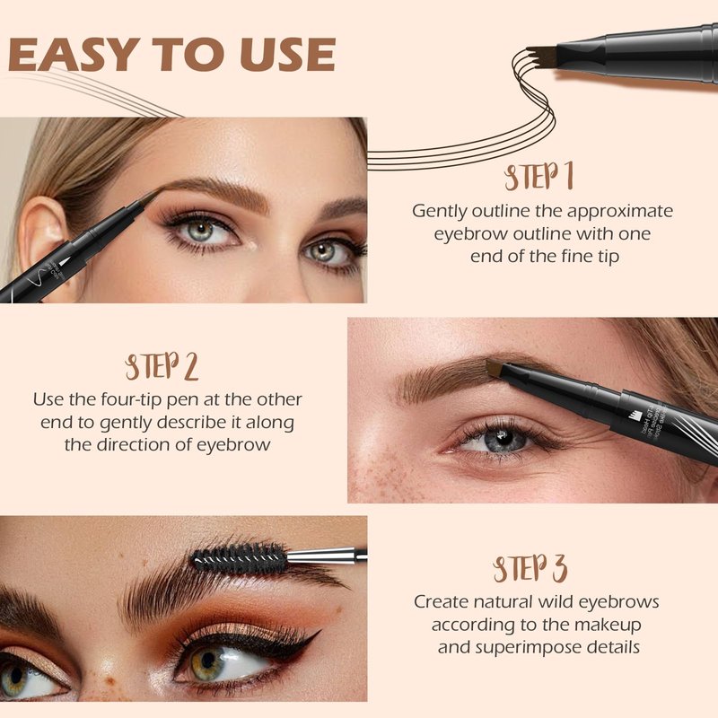 - 【Versatile Dual-Ended Brow Pen】Our 2-in-1 dual-ended brow pencil features a 4-Fork-Tip on one end to fill in sparse areas and blend color, while the Ultra-Precise Tip on the other end creates fine, hair-like strokes, allowing you to easily create brows that look incredibly realistic and defined. Available in 4 shades - Light Brown, Dark Brown, Gray, and Black - to match your unique look.