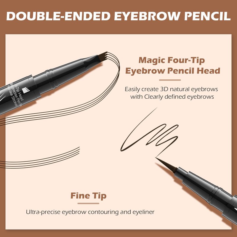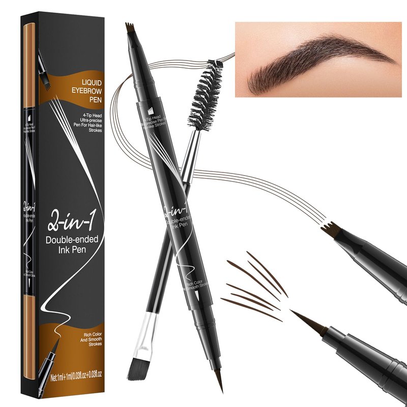 - 【Versatile Dual-Ended Brow Pen】Our 2-in-1 dual-ended brow pencil features a 4-Fork-Tip on one end to fill in sparse areas and blend color, while the Ultra-Precise Tip on the other end creates fine, hair-like strokes, allowing you to easily create brows that look incredibly realistic and defined. Available in 4 shades - Light Brown, Dark Brown, Gray, and Black - to match your unique look.