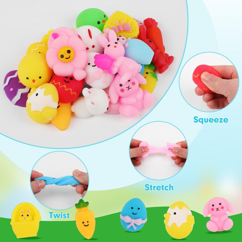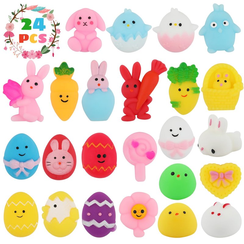 - Value Pack: You will get 24pcs Easter mochis, including spring flower, Easter egg, Easter bunny, Easter chick, carrot and more. A variety of colors and shapes for kids to choose. Cute squishies toys are the ideal gifts for Easter party favors