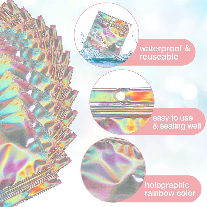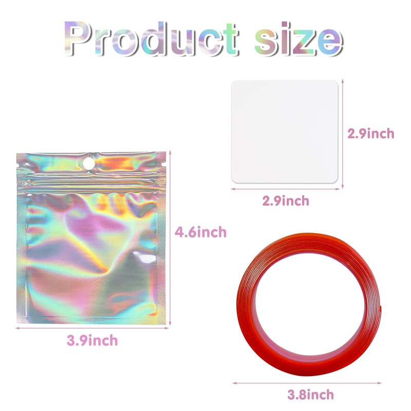 - Press On Nail Packaging Bag: made of quality polyester, holographic color, glows rainbow color in different angle, reusable and waterproof. Each bag size is 3.9*4.6inch.