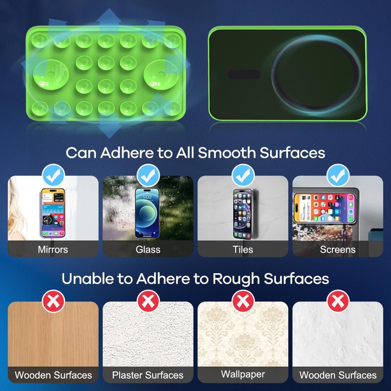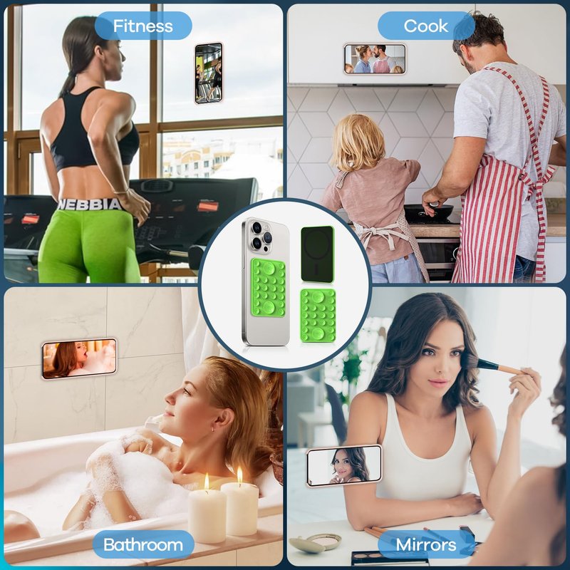 - Fantastic Phone Holder: The innovative magnetic silicone suction phone mount can stick your phone on any smooth surface to take pictures, videos, chat or watch movies. Let you get rid of the heavy tripod and create social media content anytime, anywhere.