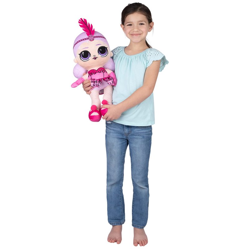 - FUN AND CUDDLY: This cuddle pillow brings Show Baby to life with fun details that include a dimensional pink feather, ruffled tutu, and pom-pom sandals along with pink hair, gloves and tank top, fishnet stockings, and embroidered facial details just like the LOL Surprise character. Great for home or travel, in the car, or on campouts or sleepovers—this pillow is the ultimate accessory for napping, cuddling and playing.