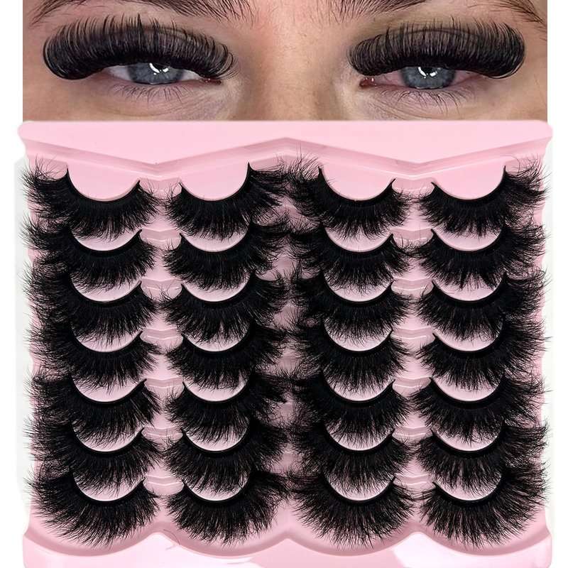 loladook Dramatic Lashes Fluffy 20mm Mink Lashes Cat Eye Big Eyelashes Mink Long False Eyelashes Cat Eye 25mm Volume 14 Pairs Strip Lashes Pack