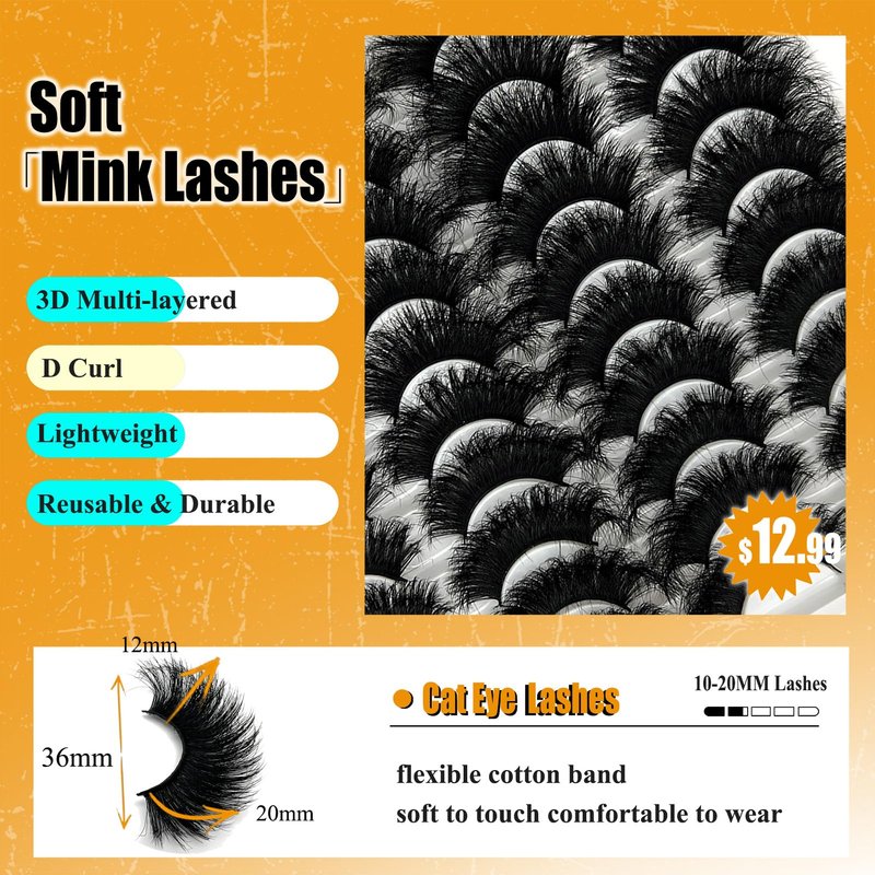 - Size: Dramatic Mink Lashes/10-20mm