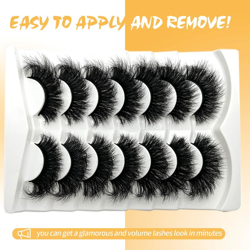 Want the individual look strip lashes but without individuals?The full strip lashes are easy to apply and remove in minutes.And our false lashes made with soft wide lash band which are flexible and comfortable!Voluminous and full will give you a dramatic look. These lashes are long and full with mink texture with premium quality.25mm lashes suitable for date nights look, the perfect d curl to give the individual lashes look. Also Easy to apply, these false eyelashes look seamless.So the strip lashes that look like extensions will blend into your natural lashes, not heavy at all.