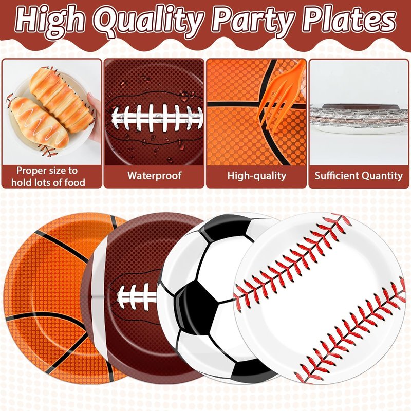 - Premium quality: These sports party paper supplies for birthday are durable and reliable. This sports plate tableware set is designed to hold up a variety of foods without leaking, well-printed, and avoid fading embarrassment.