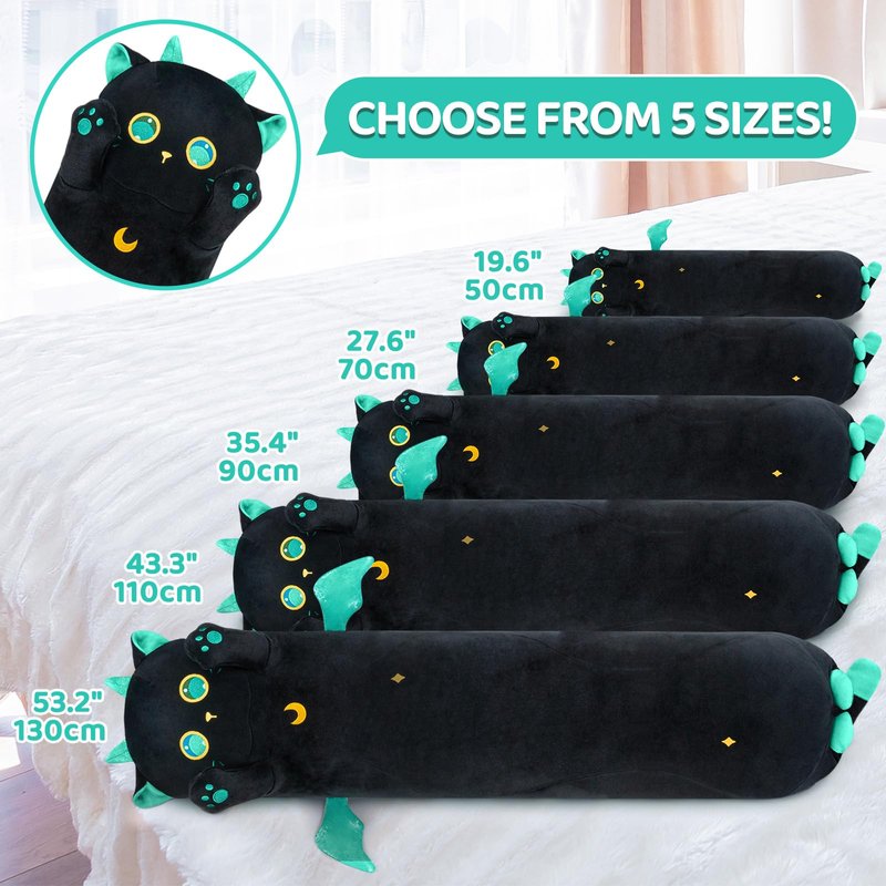 - Multipurpose: This long black cat body pillow provide adults and kids not only a multiple-size hugging pillow, but also the best lumbar body pillow when you sitting on a sofa; And also the most comfortable sleeping pillow for a sweet sleep on the bed