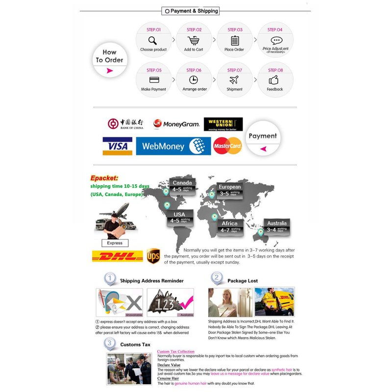 Please note that while most packages arrive within the estimated timeframe, unexpected delays may occur due to factors such as customs inspections, public holidays, weather disruptions, or other unforeseen circumstances. Delivery dates are not guaranteed, as final transportation is managed by third-party carriers.