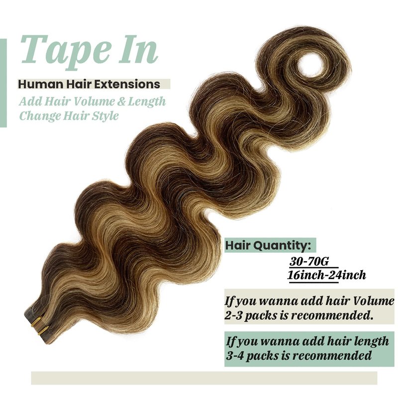 Product information:Body Wave Tape In Remy Human Hair Extensions