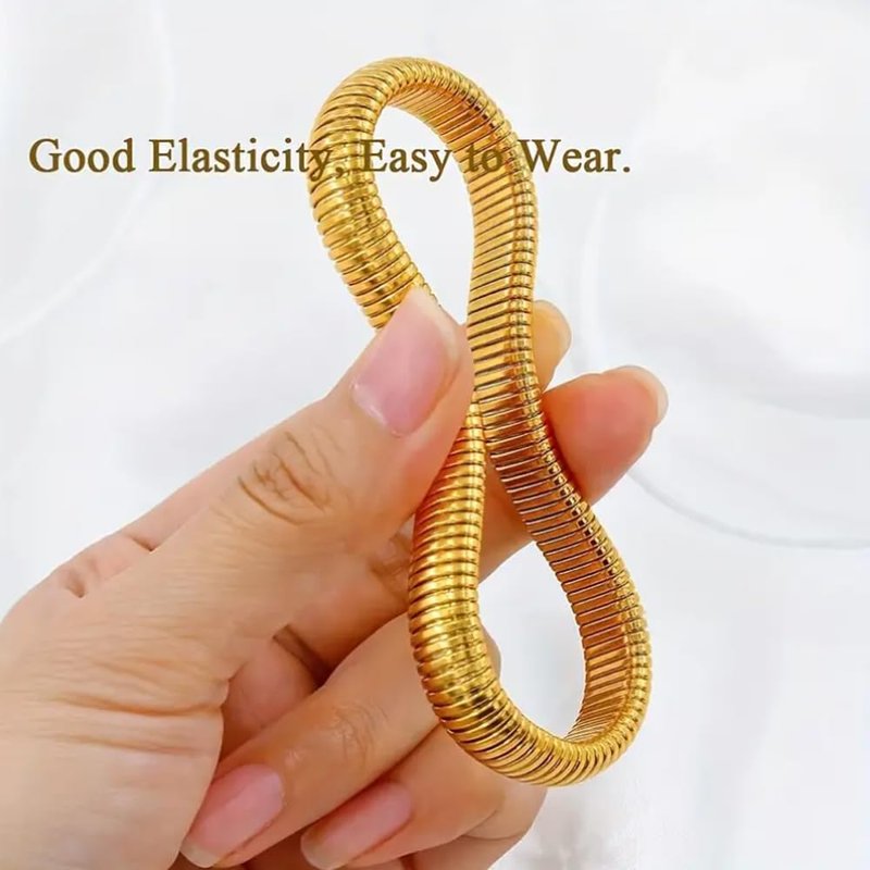 - CHUNKY BANGLE BRACELETS:This gold thick bracelet with minimalist design, simple and generous style, very with blouses, suits and other simple wear wear, but also with dresses, is a very fashionable women's jewelry items, you can rest assured to wear