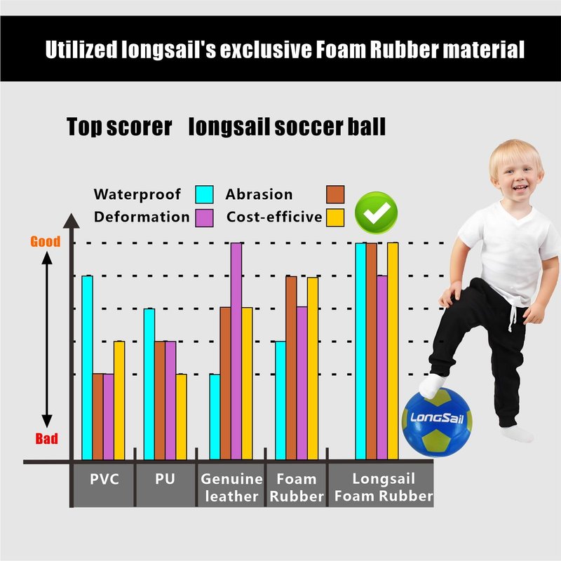 - OFFICIAL SIZE 3/4/5 SOCCER:The Longsail soccer foam rubber soccer balls are made of high quality material.Pamper the feet of children ages 3 and up and allow these little athletes to enjoy fun and safe playtime as they develop their skills.It is also particularly beneficial for youth and adult in training and competition, helping to develop dribbling, passing and shooting, which can better help you improve your skills and consistent play.