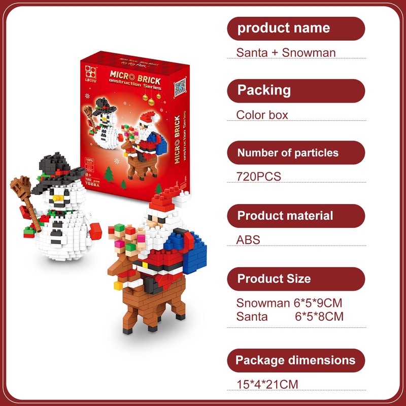 • 【One box multi-purpose】There are 720 small blocks in the box, which can be used for four different types of Christmas toys. They are Snowman / Santa Claus / Gift Santa Claus, which is very suitable for children.