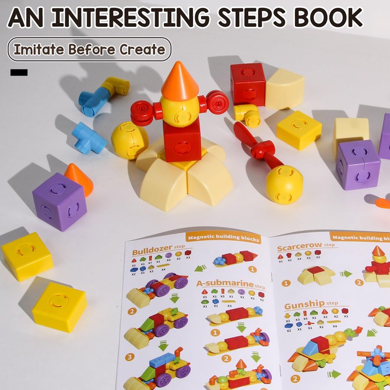 - 【MAGNETIC BUILDING BLOCKS FOR KIDS 3 4 5 6】: Our magnet tiles blocks toys including 60 magnet cubes in 8 colors and 18 different shape magnet cubes.It’s a funny 3 4 5 6 year old boy toy. An idea booklet in this magnetic toys set will teach kids to build a variety of vehicles,such as car, truck, bulldozer, boat, helicopter, and so on. It is a wonderful creative playing toy that helps stimulate children's imagination. In addition,a fancy storage box will make it easier to store after children finish playing.