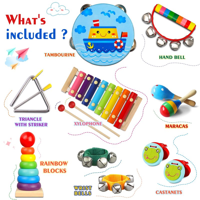 - ♥【Parent-child Relationship Enhancement】:A perfect set of inspired musical instruments will not only help develop your child's musical sensitivity, but also add fun to your family. By spending time play music toys together, will help enhances the relationships between parent and children.Best musical instruments for toddlers.