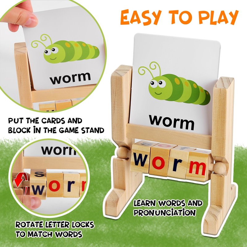 - 【Letter Matching Phonics flash cards】When playing the reading games with kids, place the phonics cards in the slots of the wooden frame and let them rotate the phonics cards to match the words according to the cued words and image information on the cards. You can also have kids find the correct card based on the randomly rotating letter blocks. Updated letter learning games show kids how easy and fun it is to learn letters. Enjoy learning new words with your kids