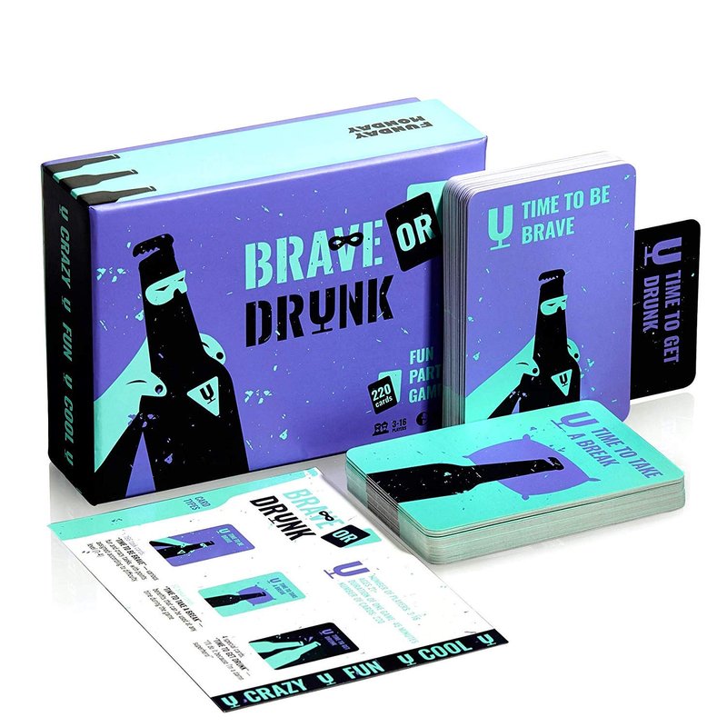 Brave or Drunk. Have your meetings and parties with friends become monotonous: sit, talk, and go home? Relax and go wild with unusual ideas youâll encounter playing Brave or Drnk! This game is the superhero of every party! Easy rules The rules of this party game are easy, but the tasks are challenging and unique. Everyone here? Ready? Then what are you waiting for!? Draw a card and letâs see what happens next! Unique tasks Brave or Drunk wonât ask you to crow three times or jump on one leg - thatâs so last decade! Can you act like fried bacon, withstand a slap from your friend, or dance a twerk? So what if there are people around - the excitement of the game will do its job This Card Game is a Party King Bring some variety and adrenaline into your life: there are 220 cards in this game, each with unpredictable content. Rock the party with this new party game! Not only is the admiration of your friends waiting for you, but also: A fun and unusual evening - turn your gathering of friends into one big provocation, where everyone can show their true selves. Are you a cool guy or girl or a LOSER? 2.Show who is the party king in your company of friends! This game will cause crazy excitement and tons of emotions, and the gratitude for it will all go to you! 3.Sarcasm without limits! Do you like humor, pranks, and teasing friends? Then this game will do it for you! Enjoy the positive mood, because life is a good thing! party game drinking game