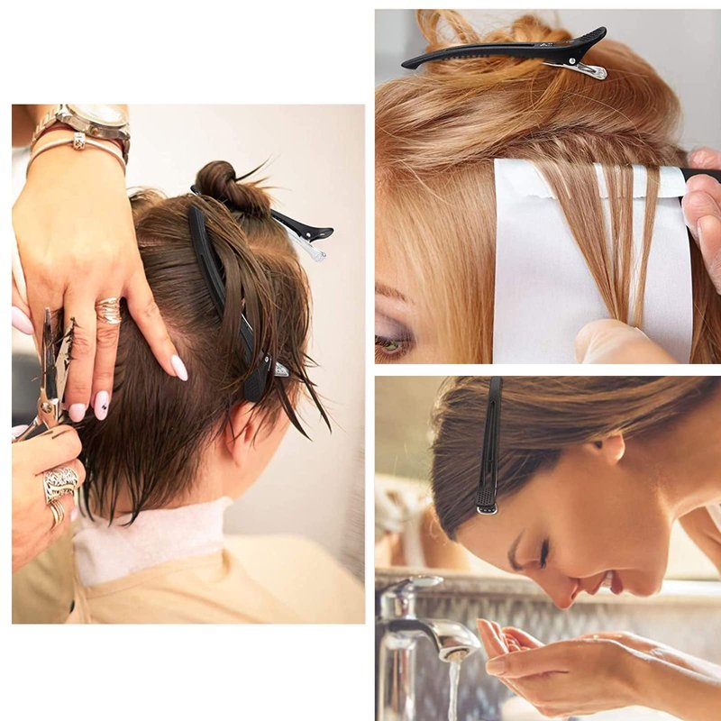 - The top of the hair clip is made of durable plastic, and the bottom is made of rust resistant and smooth metal, which can better slide into the hair. The silicone has a very important anti slip strip, so the hair clip will not easily fall off. High elastic metal springs can be used for a long time even after repeated use. These duckbill clips are perfect for cutting hair and keeping hair in place.