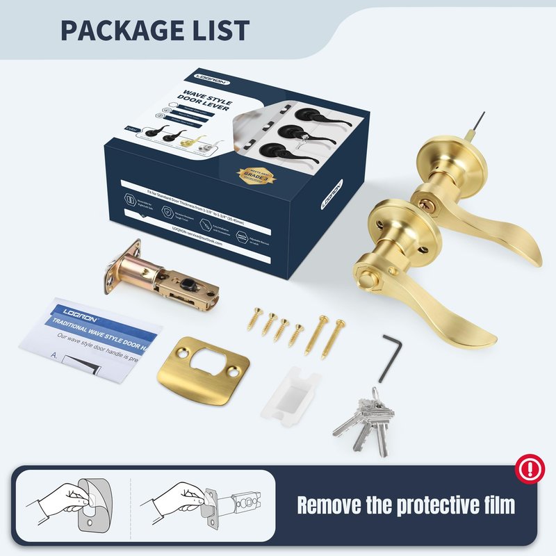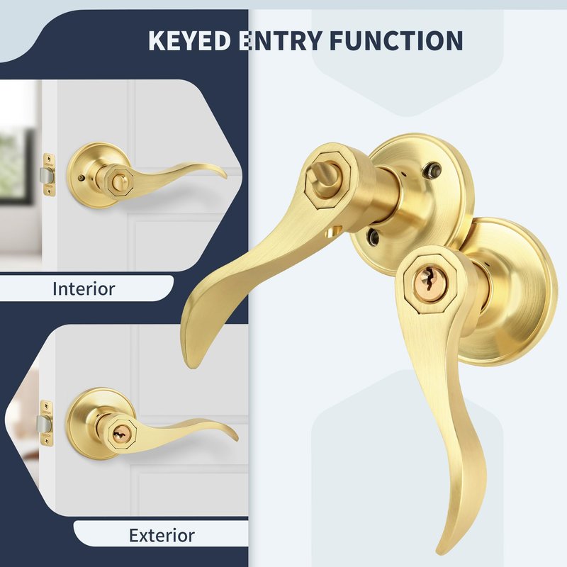 - 【Classic Wave Style Design】 The comfortable and elegant design provides a comfortable grip and safe operation. Satin Brass finish not as shiny but more of a warm, subdued gold smooth matte is suitable for both traditional and modern decorative styles. Keyed Entry Function perfect for Office or Front Door adding a touch of sophistication to your door.