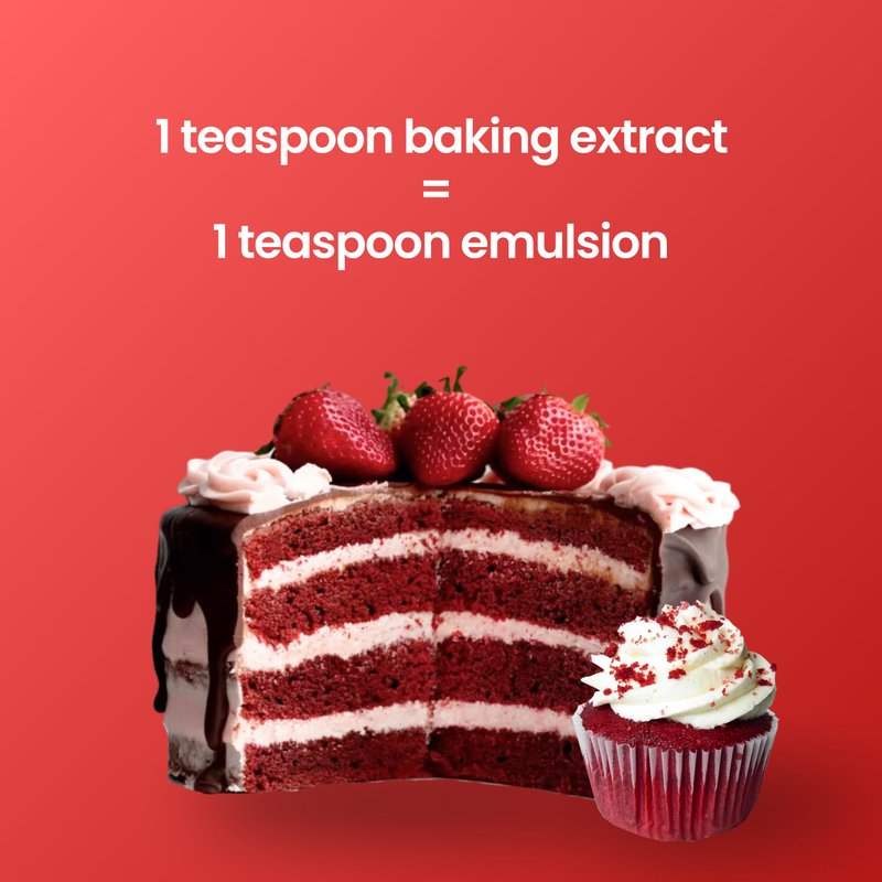 - Premium Quality Ingredients by Lorann flavoring oils: Crafted with the finest quality ingredients, our Red Velvet Bakery Emulsion is gluten-free, sugar-free, and contains no artificial colors. The emulsion baking is a healthier option that doesn't compromise on taste, perfect for those with dietary restrictions. Infuse your cakes, cookies, and cupcakes with cake batter extract, natural and red food coloring, and red velvet cake mix for that signature red velvet taste.