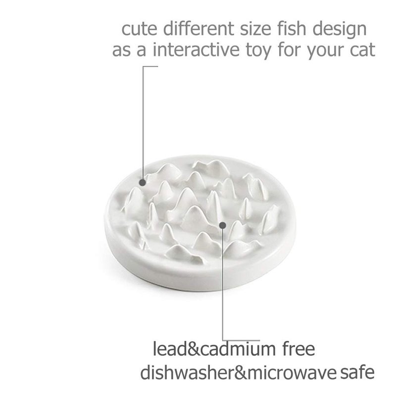 - ▶FUNY TOY-- Maze shape bow allows your pet to enjoy catching food in this different size- fish shape bowl, brings added fun and improves its agility.Reasonable distance between ridge and valley can effectively delay the pet eating speed. Smooth design of the surface, to avoid the pet mouth and tongue from being scratched.