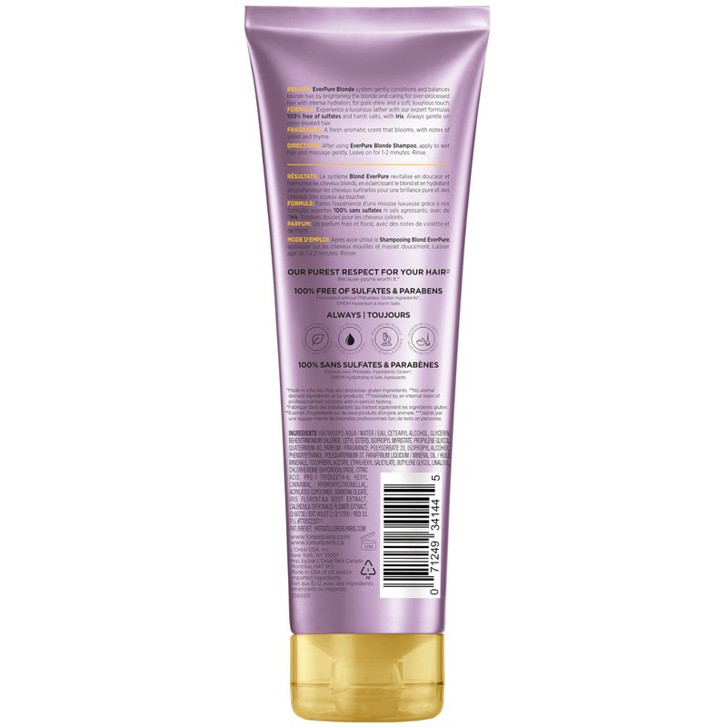 L'Oreal Paris Blonde Sulfate Free Conditioner for Color-Treated Hair, Neutralizes Brass + Balances, EverPure, 8.5 Fl Oz (Packaging May Vary)