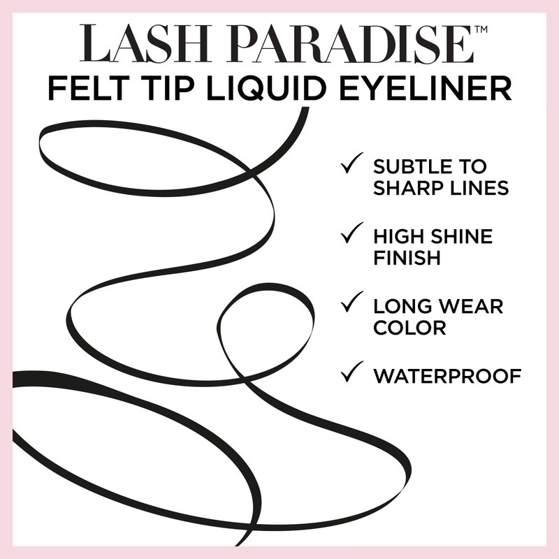 - Black Eyeliner - High Shine Black Lacquer Finish Liquid Felt Tip Eyeliner - Rich, waterproof formula dries quickly for a long wear high shine lacquer finish