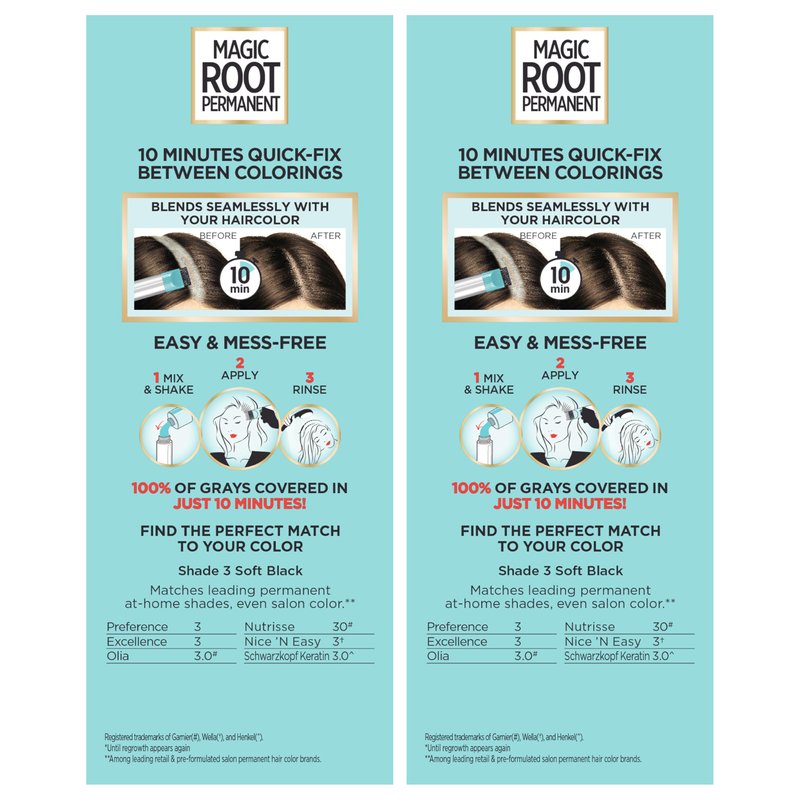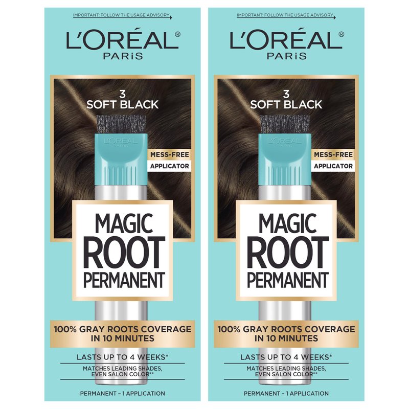 L'Oreal Paris Magic Root Rescue 10 Minute Root Hair Coloring Kit, Permanent Hair Color with Quick Precision Applicator, 100 percent Gray Coverage, 3 Soft Black, 2 count