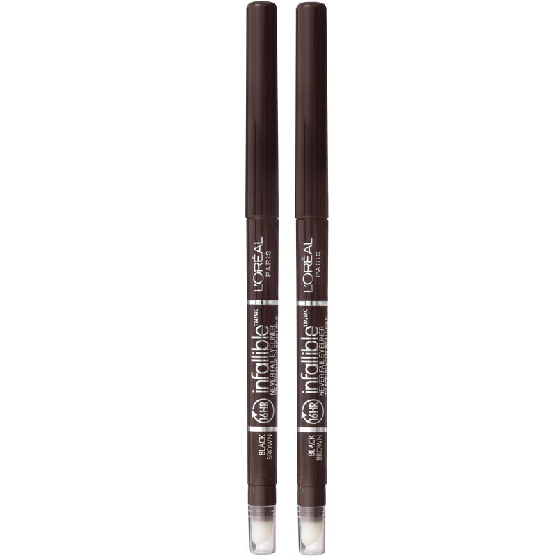L'Oreal Paris Makeup Infallible Never Fail Original Mechanical Pencil Eyeliner with Built in Sharpener, Black Brown, 0.008 oz., 2 Count