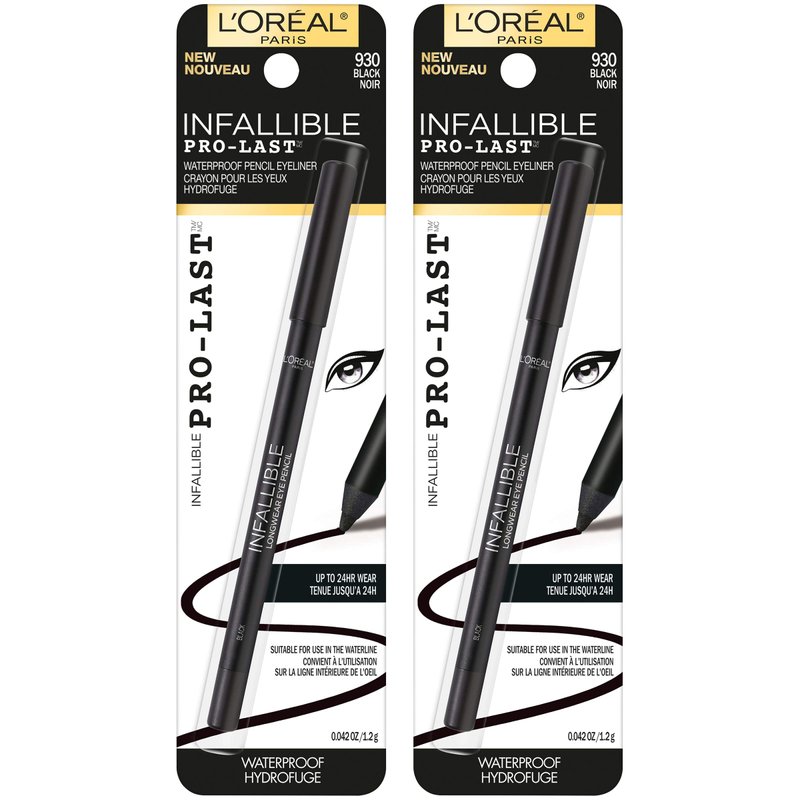 L'Oreal Paris Makeup Infallible Pro-Last Pencil Eyeliner, Waterproof and Smudge-Resistant, Glides on Easily to Create any Look, Black, 0.042 oz., 2 Count