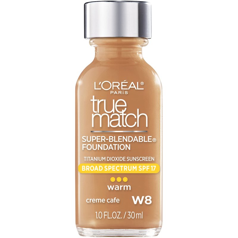 L'Oreal Paris Makeup True Match Super-Blendable Liquid Foundation, Crème Café W8, 1 Fl Oz,1 Count