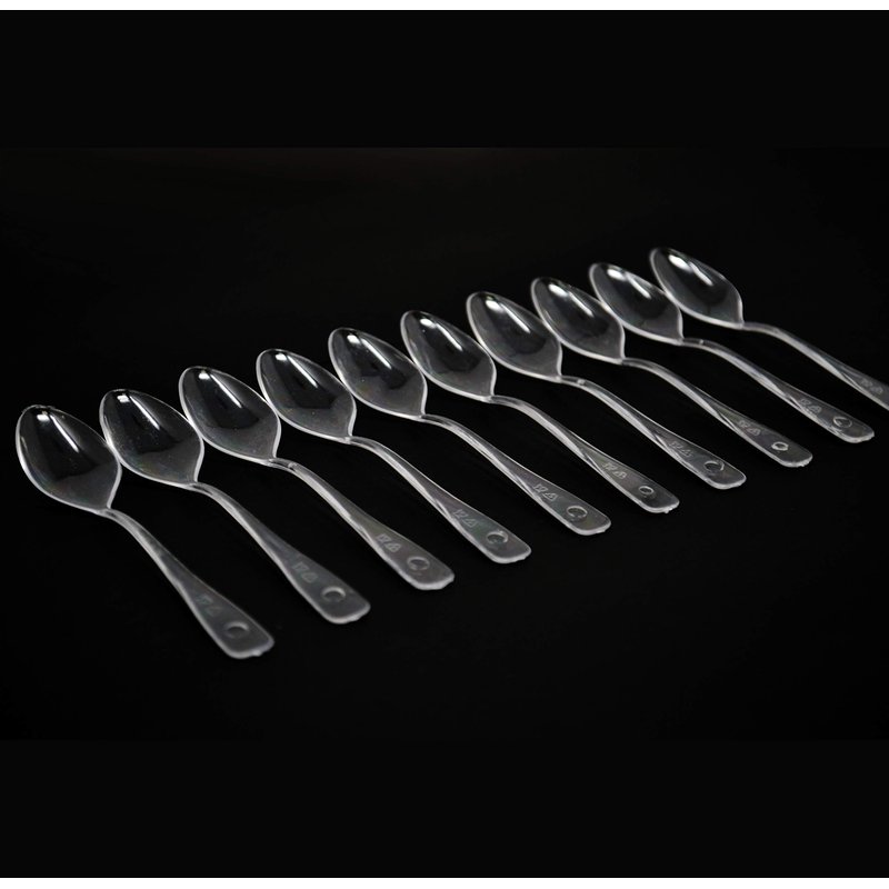 LORESO Tasting Mini Clear Spoons - 50CT Complete the show and presentation of your mini appetizers and desserts with these miniature clear plastic spoons. These Mini Spoons can easily be used to complement all types of fares, tablespaces, and decors. -Premium plastic construction with sturdy handles. Conveniently disposable and fully recyclable, BPA free. Product Material: Plastic Product Color: Clear Pack Size: 50 count Product Dimensions: 3.8''L x 0.4''W x 0.3''H