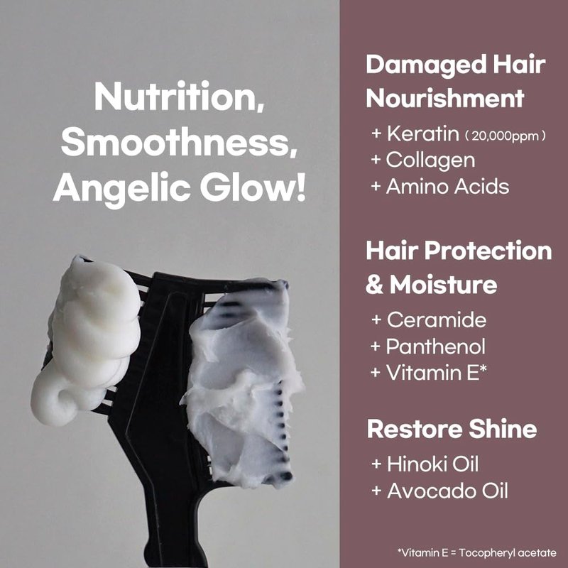 - Being suitable for use before and after chemical treatments like self-dyeing or perming, it supports pH balance and moisture balance due to its weakly acidic and highly nutritious properties.