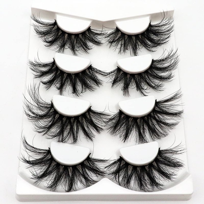 Losha 25mm Lashes Big Fluffy False Eyelashes 3D Dramatic Long Volume Faux Mink Lashes Pack 4 Pairs