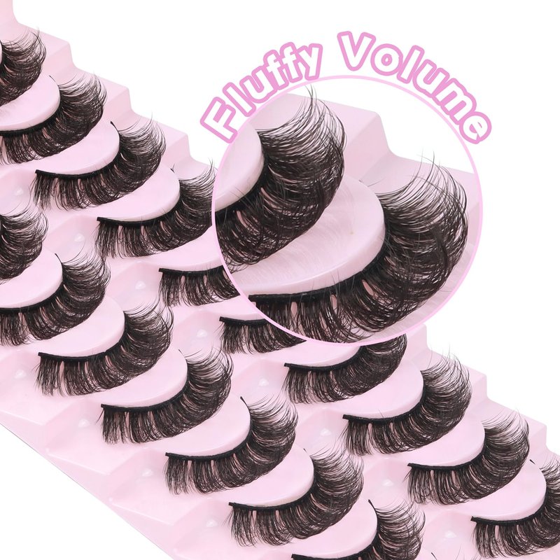 Losha Eyelashes DD Curl Russian Strip Lashes Wispy False Eyelashes that Like Lash Extensions 10 Pairs Soft Fake Lashes Pack (D03)