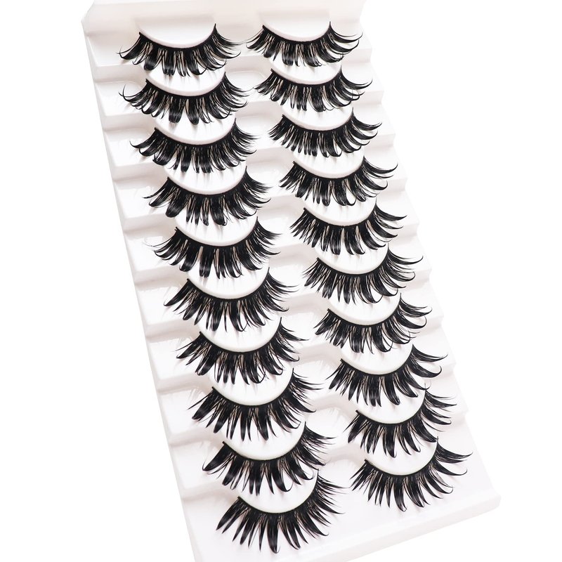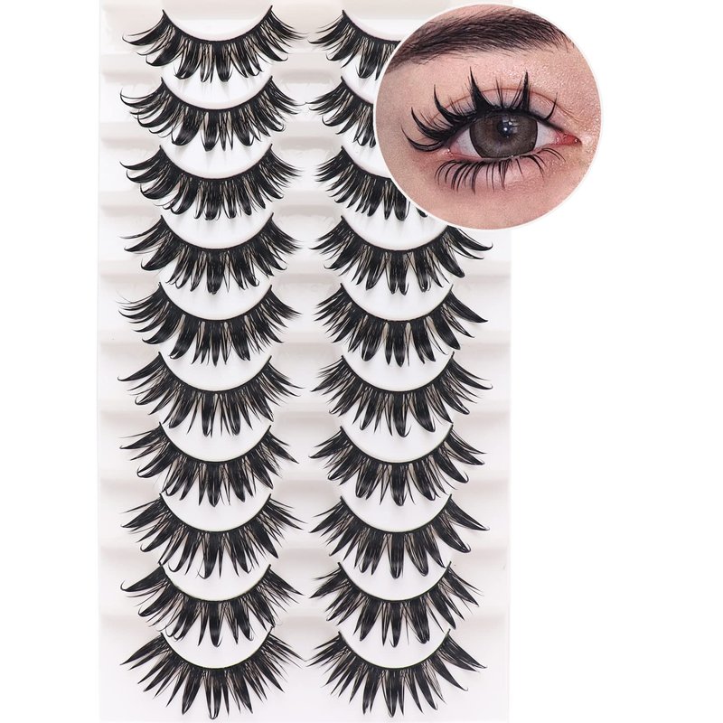 Losha False Eyelashes Spiky Manga Lashes Natural Look 20mm Fluffy Anime Wet Look Lashes 10 Pairs Fake Eyelashes Pack for Cosplay (03)