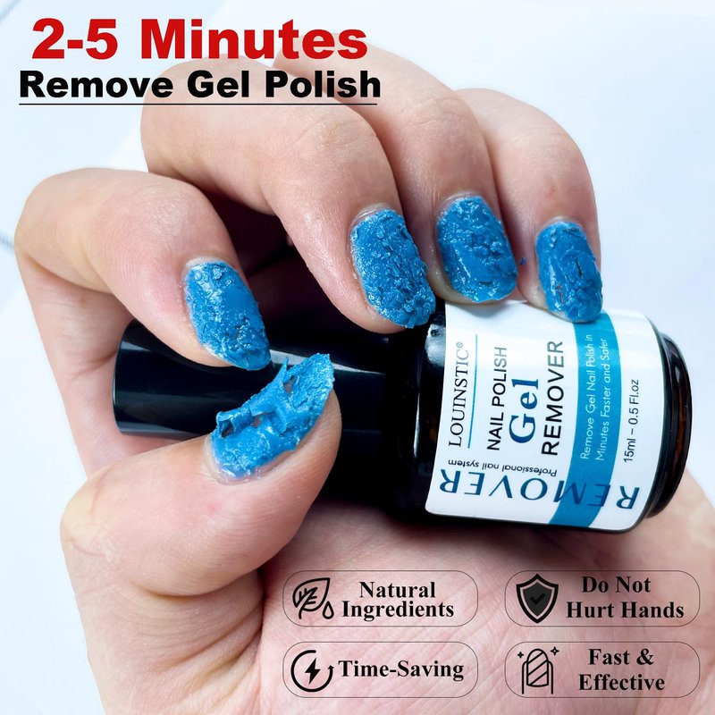 - 【Healthy & Low Odor Formula】LOUINSTIC gel nail polish remover is formulated with specially enhanced organic solvents, does not contain acetone, does not damage nails, and has no irritating odor. You no longer need to soak in irritating acetone, nor do you need to deal with aluminum foil and scraping. After using it once, you will want to say goodbye to the cumbersome and traditional way of removing nail polish!