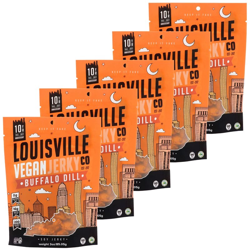- LIMITED EDITION: Buffalo Dill is a limited edition Louisville Vegan Jerky flavor. Only 5,000 of these babies were made—nice & spicy, classic buffalo flavor. All bags are labeled 1-5,000, once they're gone that's it!
