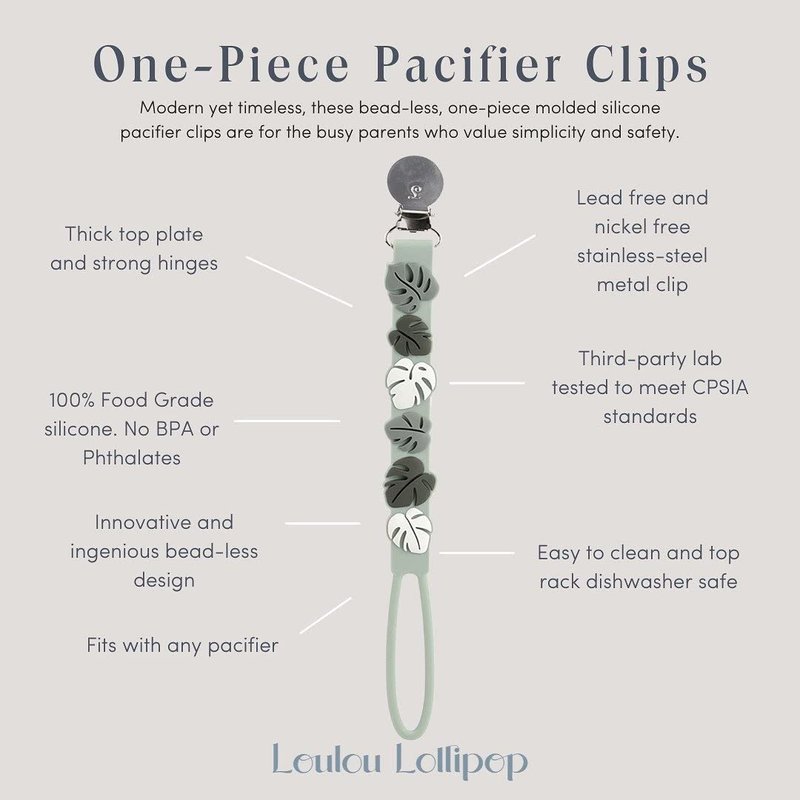 Loulou Lollipop Beadless Silicone Pacifier Clip (Monstera, Green)