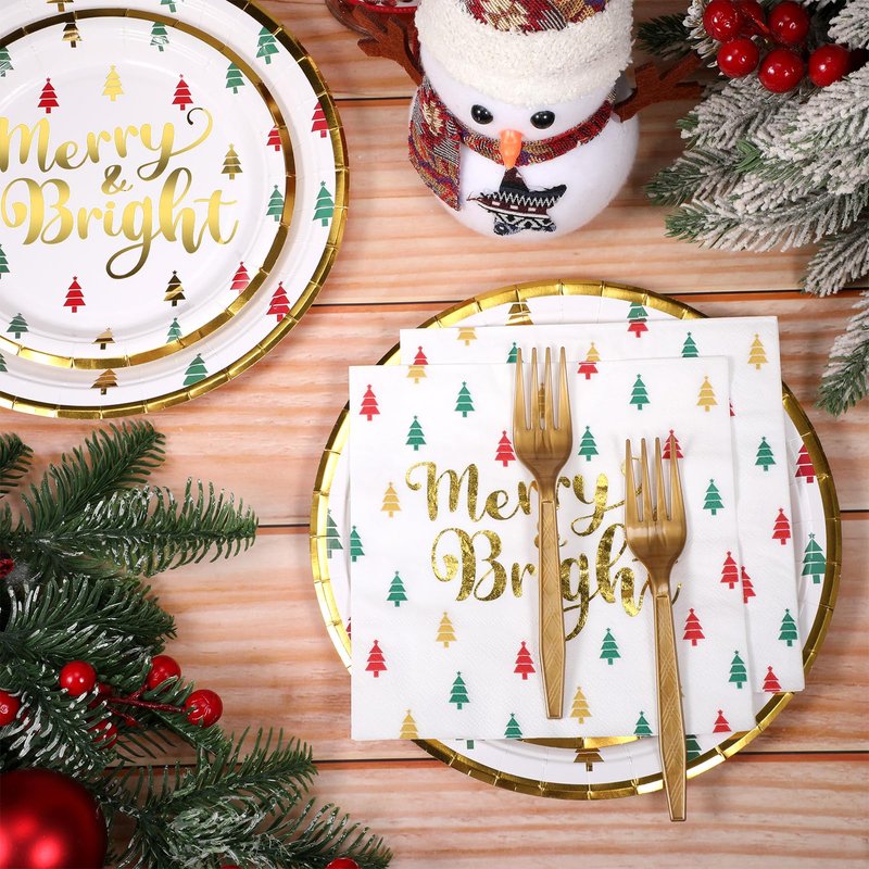 - Christmas Party Supplies: the package includes 48 pcs Christmas paper plates (7 inch and 9 inch), 24 pcs Christmas Tree napkins, and 24 pcs forks, a nice combination to serve 24 guests