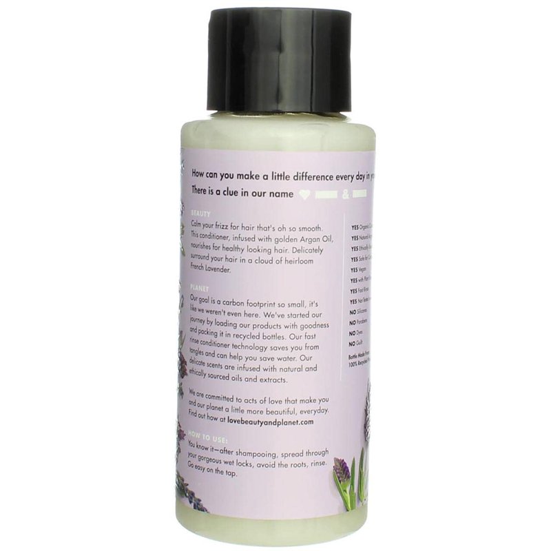 - OUR HAIR CARE PROMISE: Love Beauty and Planet Argan Oil & Lavender Smooth and Serene 100% Biodegradable Conditioner delivers a healthy shine and frizz control while nourishing hair
