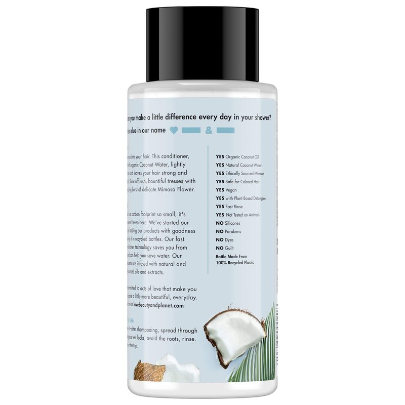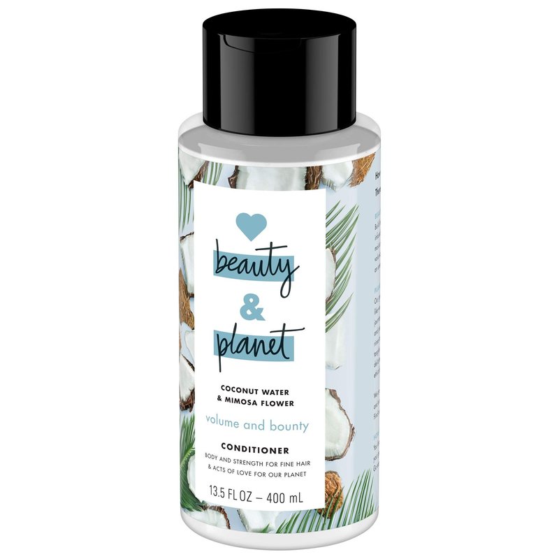 - OUR HAIR CARE PROMISE: Love Beauty and Planet Coconut Water & Mimosa Flower Volume and Bounty Conditioner lightweight formula detangles and provides body and strength for fine hair