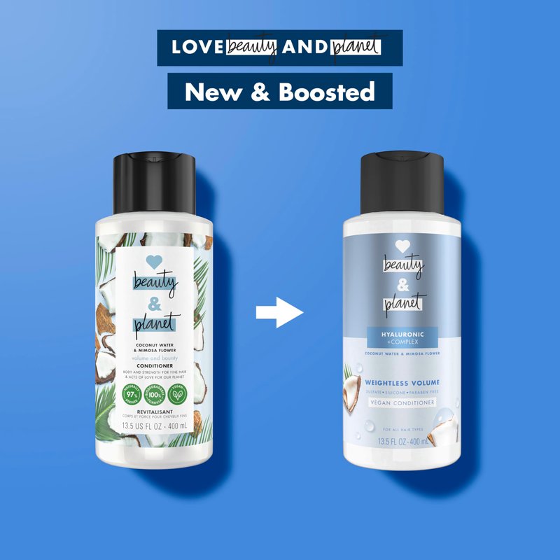 Love Beauty and Planet Weightless Volume Conditioner with Hylauronic acid Coconut Water & Mimosa Flower for Thin and Fine Hair Care 13.5 oz