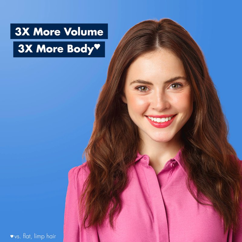 - THREEX FULLER-LOOKING HAIR:* Our 97% naturally-derived blend, infused with Coconut Water and weightless plant-based detanglers, builds 3X more volume* for fuller-looking hair. *vs. flat limp hair.